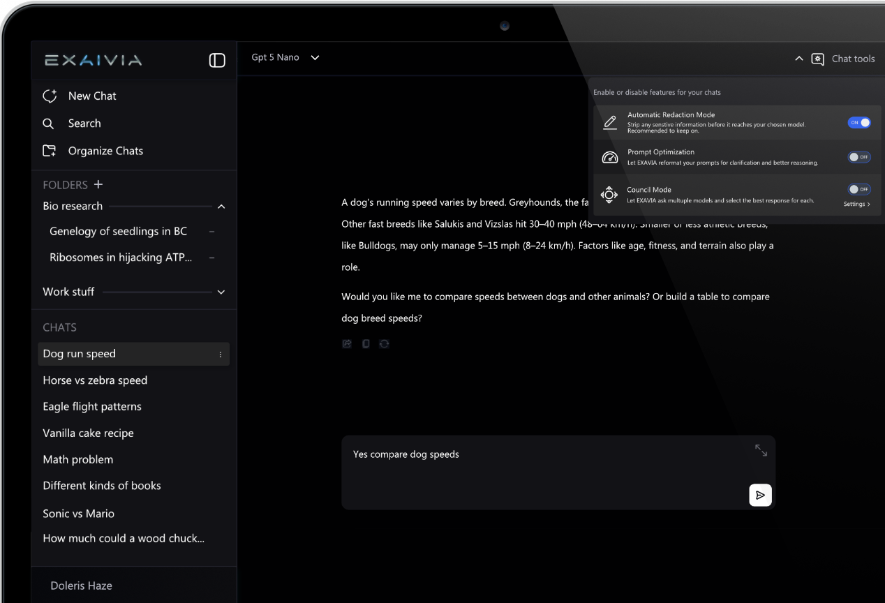 EXAIVIA is a single, integrated workspace that combines multiple leading AI models with powerful, built-in tools designed to maximize output quality, accuracy, and control.